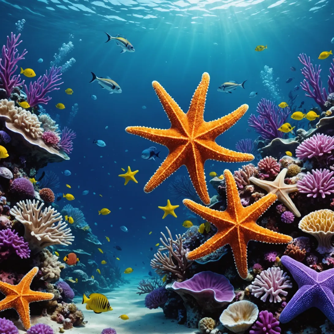 Погружение в мир самых красивых морских звёзд: Пурпурная и голубая