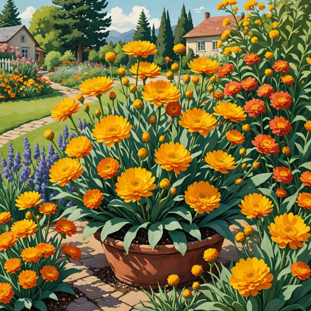 - Хорошо сочетается с многолетниками и однолетниками, такими как лаванда, шалфей и бархатцы.