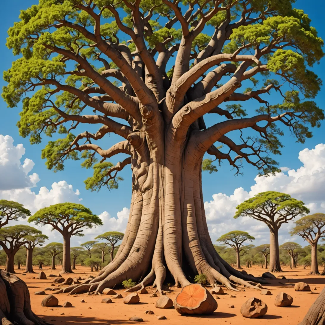 - Баобабы известны как "деревья жизни" за способность хранить воду и давать пищу и убежище.