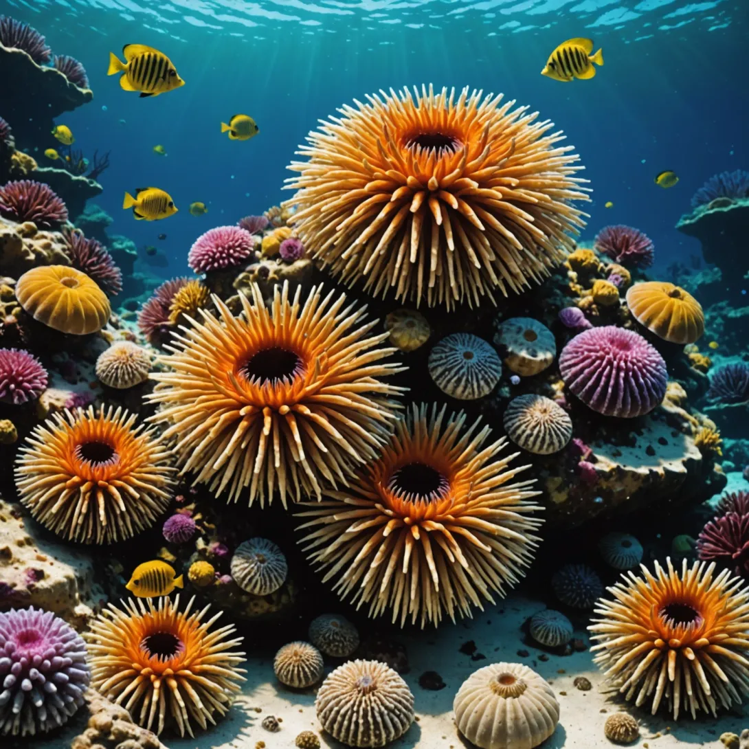 Приготовьтесь к увлекательному путешествию в мир цветов и форм, где каждый морской еж — это маленький шедевр природы, созданный для того, чтобы удивлять и восхищать.