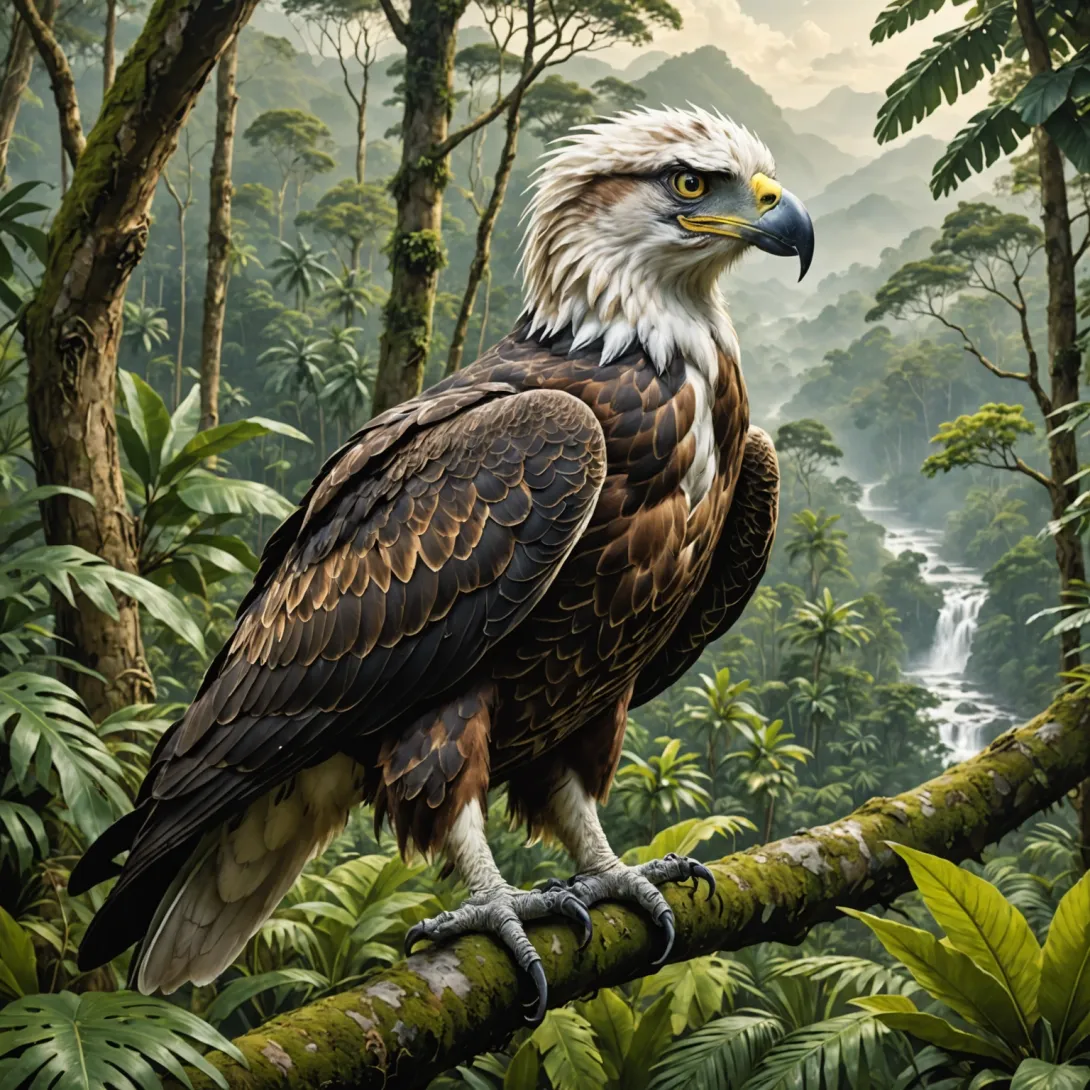 - Филиппинский орёл: Отличается крупными размерами — длина тела достигает 90 см, а размах крыльев — до 2,2 метра. Обитает в густых тропических лесах, где охотится на мелких млекопитающих, птиц и рептилий. Его острое зрение и мощные когти помогают ловить добычу в условиях ограниченной видимости под кронами деревьев.